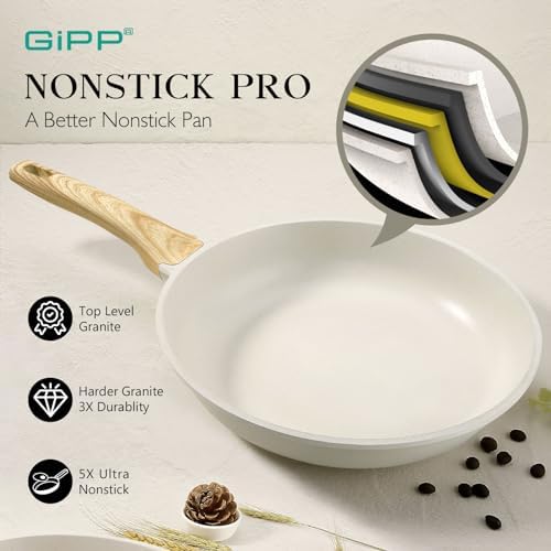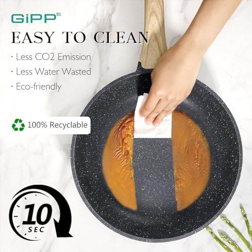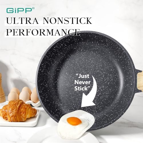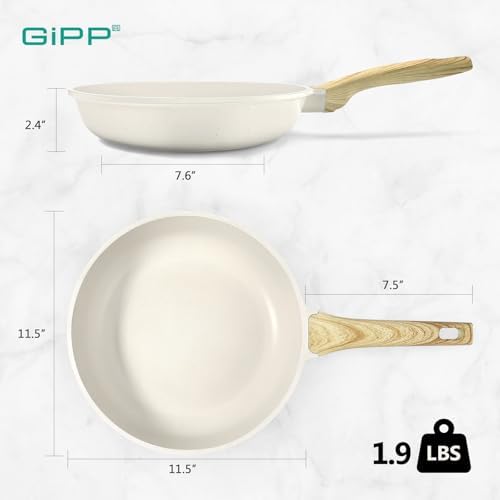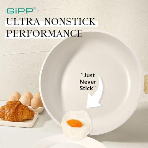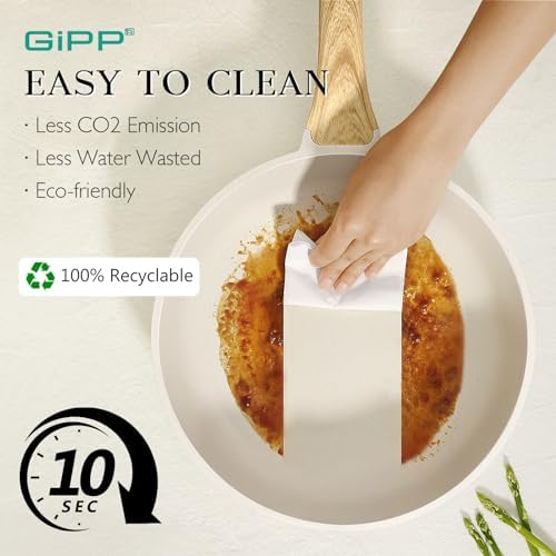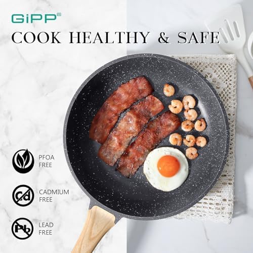 GiPP Non Stick Frying Pan – 8″ Ceramic Coated Skillet for Cooking, Non-Toxic Omelette Pan with Stay Cool Handle, Inducti