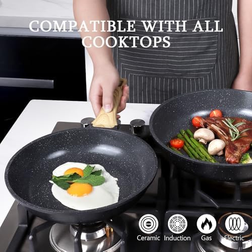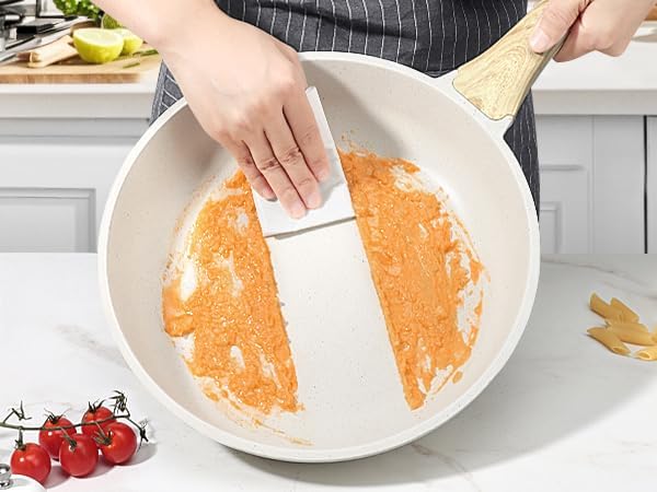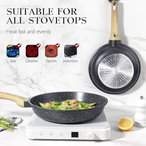Our frying pans are engineered with a magnetized base for rapid heat transfer, ensuring they heat up quickly and evenly. Compatible with gas, ceramic, electric, and induction stovetops, you can enjoy reliable performance regardless of your kitchen setup.