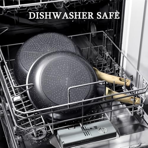 Say goodbye to tough scrubbing! Our frying pans feature a durable cast aluminum interior that is incredibly easy to clean. A simple wipe with a paper towel or a quick rinse under water is all it takes. This design not only saves you time but also reduces CO2 emissions and water wastage, aligning with eco-friendly practices.