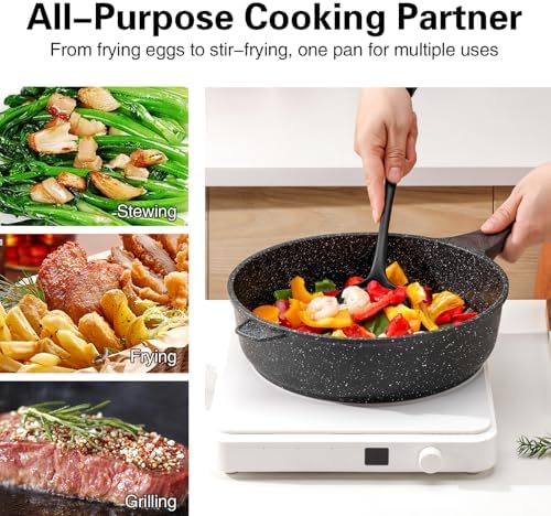 With a diameter of 10 inches, a height of 2.7 inches, and a capacity of 3.5 quarts, this sauté pan is designed for versatility. It is not only ideal for stir-frying and frying but also excels in boiling and deep-frying various dishes. Its large and deep design allows for easy cooking of multiple servings, making it a must-have in any kitchen.