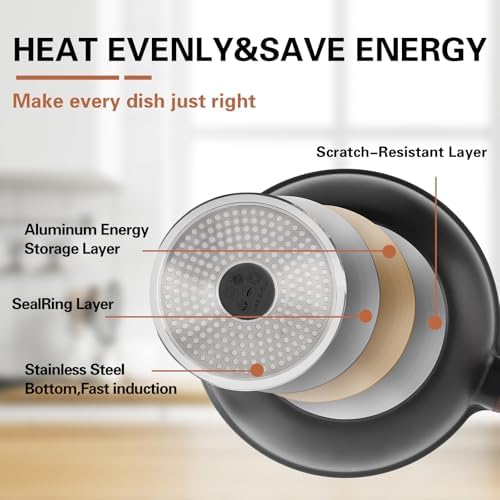 Designed with a high magnetic conductive stainless steel base, our stir fry skillet is versatile and works perfectly on all stovetops, including induction. The advanced die-casting aluminum technology prevents warping and ensures quick, even heat distribution, saving you time and energy in the kitchen.